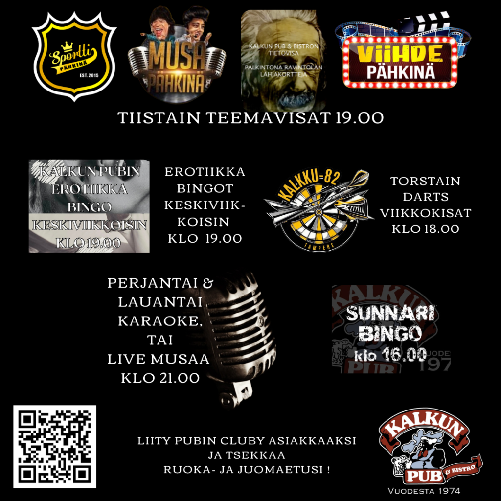 - Keskiviikkoisin Pubin Erotiikka Bingo klo 19.00 (tauot; heinä-,elo- ja joulukuu)